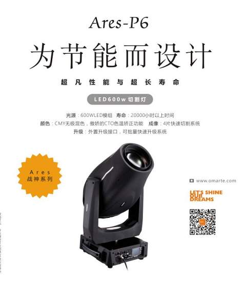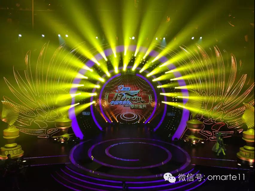 本次《夢想的聲音》第二季的燈光設(shè)計由EYE團隊,田為鈞,盧曉偉老師擔任,在燈具設(shè)備上采用了歐瑪燈光200wLED圖案燈(Ares-S2)、600wLED切割燈(Ares-P6)。