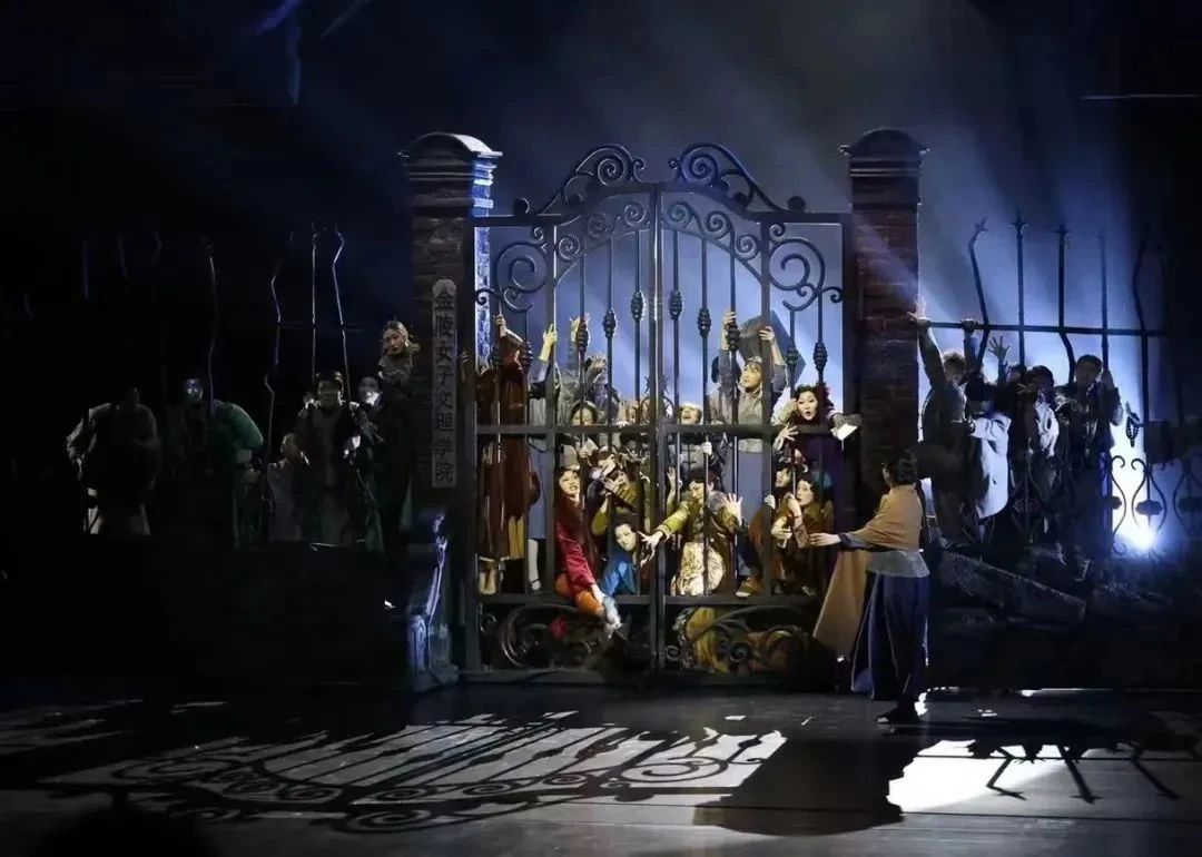 此次燈光美學上借鑒了中國書畫六法和《倫勃朗》美學融合的方式,中以“形而上”的燈光理法創建場景與意境,西以“形而下”的燈光技法強調非理性個性空間。在人物的刻畫塑造上,燈光設計把“十三釵”定義為“十三釵光”,每一個“釵主”各自有各自的燈光語匯。