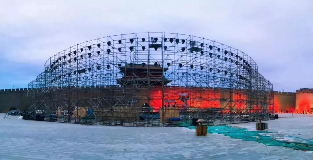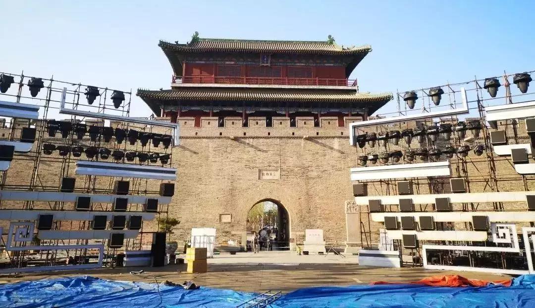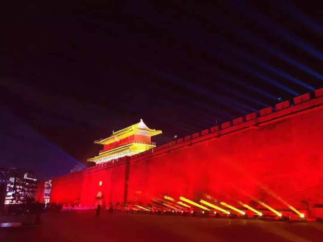 因此在燈光設計之處,設計師查閱大量關于正定古城的歷史資料,根據記載正定古城墻長樂門明正統十四年擴建,周長二十四里,高三丈三尺,上寬二丈土城。所以為了表示對那段歷史的敬意和回顧。燈光設計主造型共分三組三段,分別為地面、城墻、外圍,每組240只燈具,歐瑪450光束燈(Ares-B5),城墻頂部分2層,正合當時的古城建造的長、寬、高、厚。“以數同數向歷史致敬。