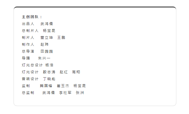 特別感謝乾元泰來(北京)國際文化傳媒有限公司燈光總設計楊浩老師的肯定和大力支持!