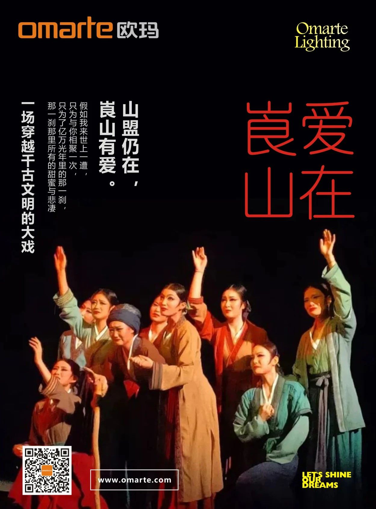 《愛在崀山》是湘西南地區唯一大型文旅演出,使用歐瑪燈光設備近200臺,歐瑪LED切割燈,LED染色燈,追光燈等以出色的表現力、穩定的性能為每場精彩的演出提供了保障。