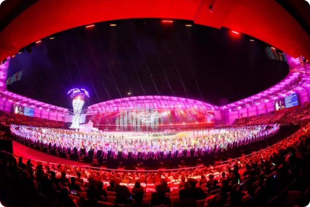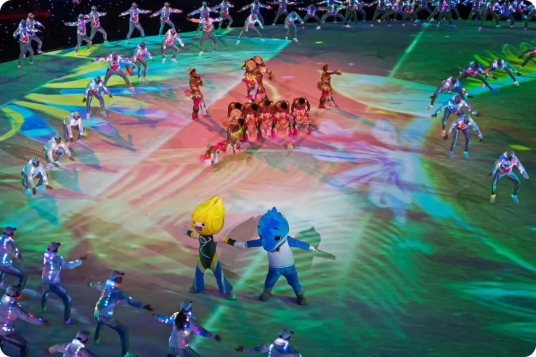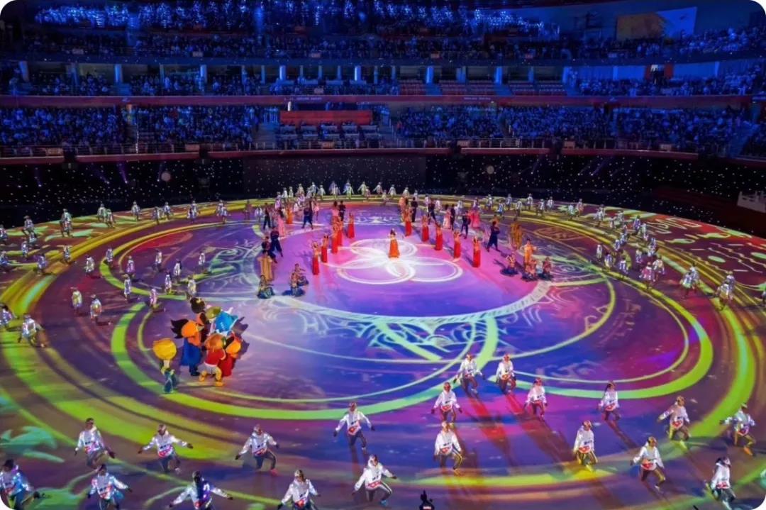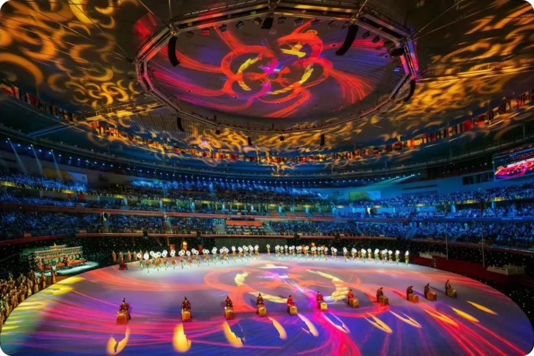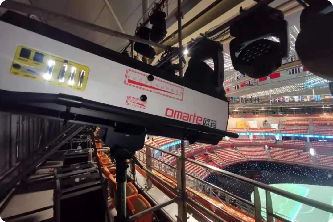 閉幕式的文藝表演晚會,歐瑪LED電腦切割燈(Ares-P7)和LED染色燈(Eos-B19)以其高亮度、低能耗華麗綻放于場館中心位置。追光燈(GATLING1500)更是身經百戰,以高穩定性聞名,一直以來深得客戶信賴。此次歐瑪燈光大力增色這場充滿活力的聯歡,讓現場的視覺效果依然磅礴大氣,依然最炫聲光電。