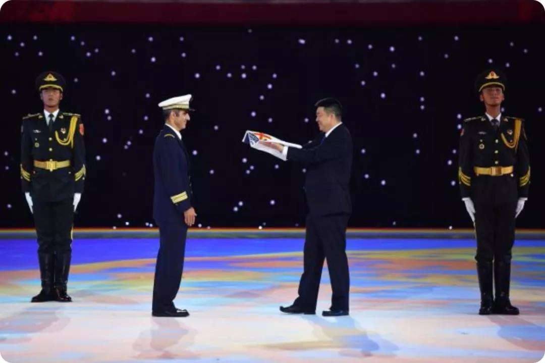 結束意味著又一新篇章的開始。在渾厚的音樂聲中,國際軍事體育理事會會旗緩緩降下,被移交到國際軍體主席赫爾維·皮奇里洛手中。