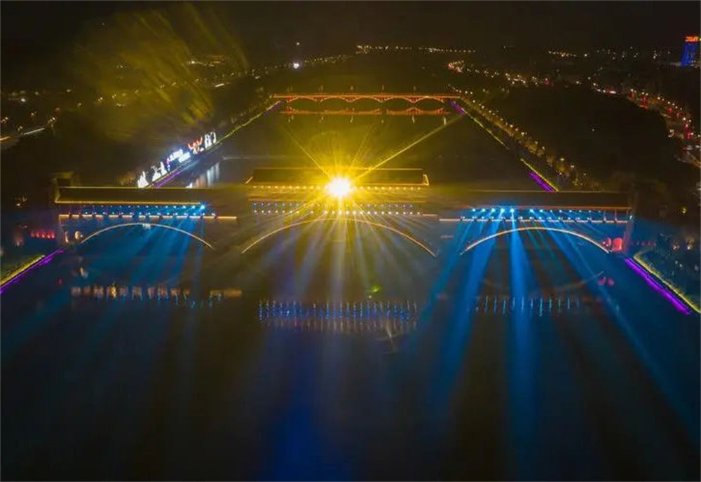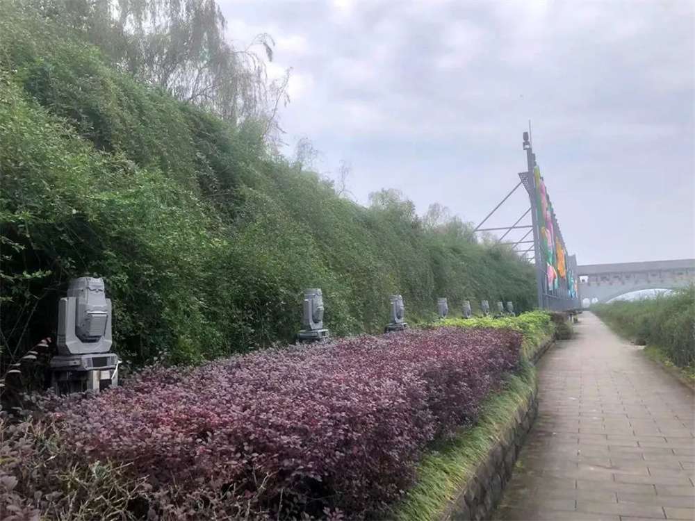 安昌河兩岸流光溢彩,在粼粼碧波的映襯下,璀璨的燈光伴隨著一首首羌族歌曲,交織出一幅幅精美的畫卷,以燈光傳情,以光影達意,不斷變化的光影,展現著北川日新月異的變化。禹王橋的燈光秀與巴拿恰的燈光亮化、音樂噴泉交相輝映,已成為了北川發展活力和文化魅力的亮麗名片。