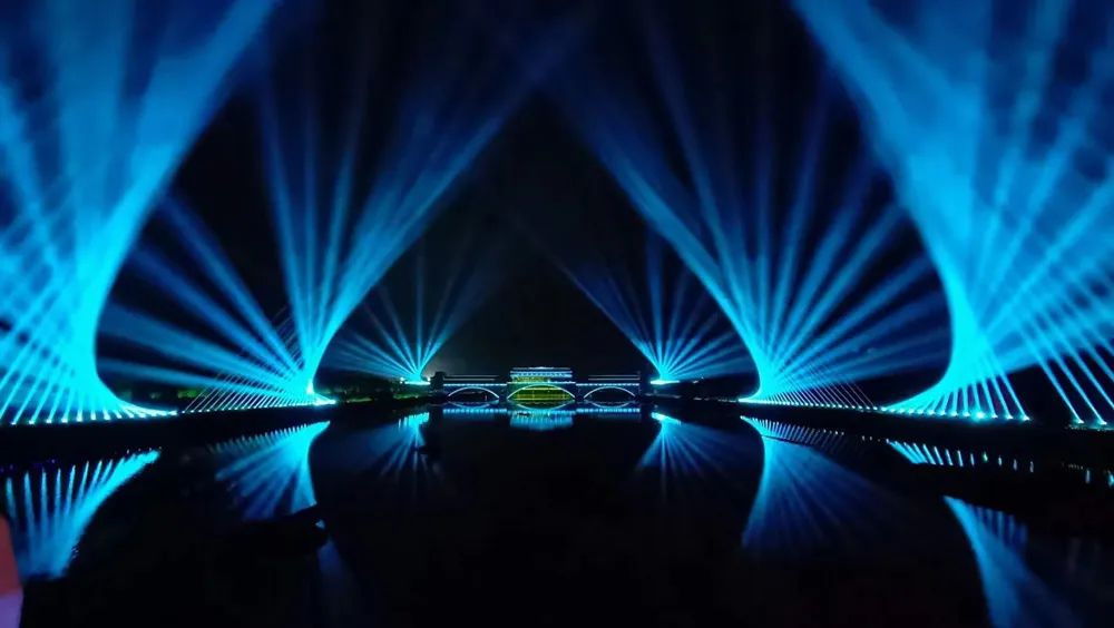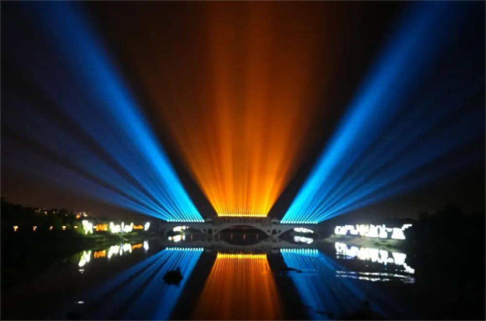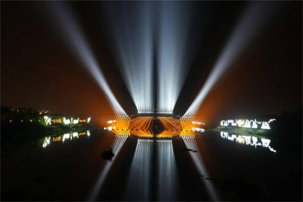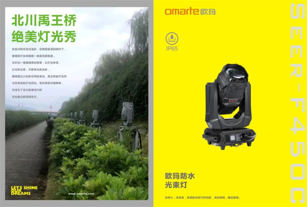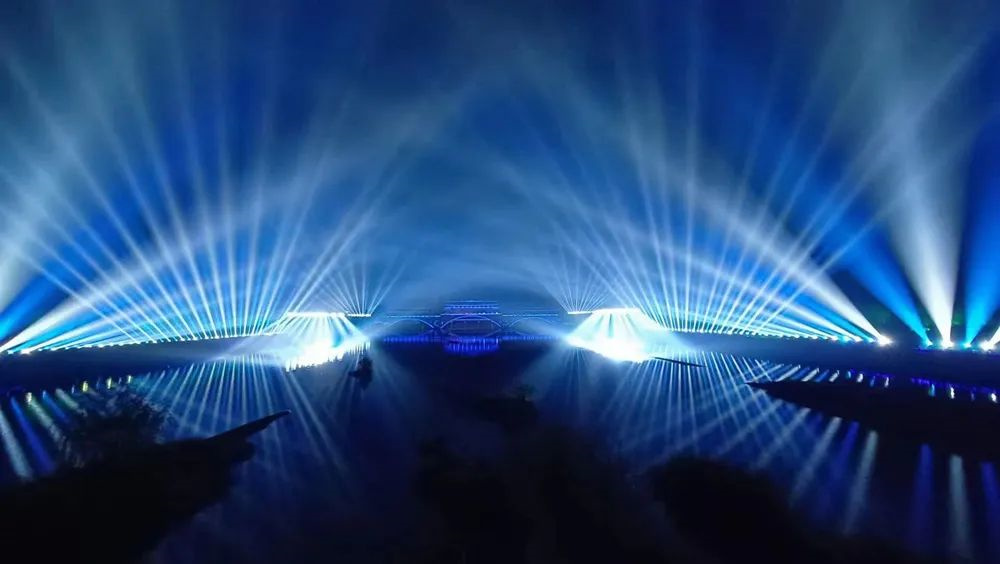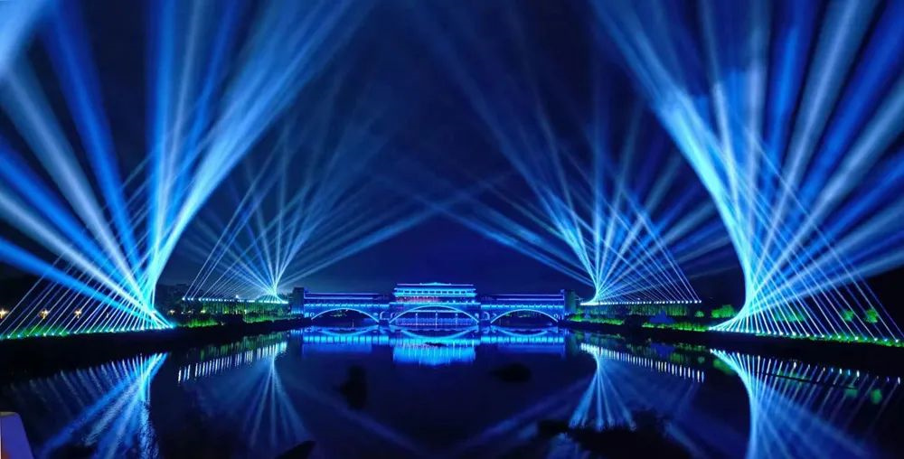 綿陽北川禹王橋燈光秀使用歐瑪防水光束燈近500臺。不管風吹雨打,我依然璀璨多姿,歐瑪防水光束燈擁有360°全防護特性,輕松防水防潮。燈光變化與音樂和表演緊密配合,通過強勁的光束、豐富的色彩,將羌族風情、大禹文化和現代氣息展現在觀眾面前,讓每一位觀眾都沉浸在光與影、美如畫卷中,流連忘返。