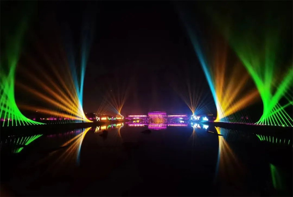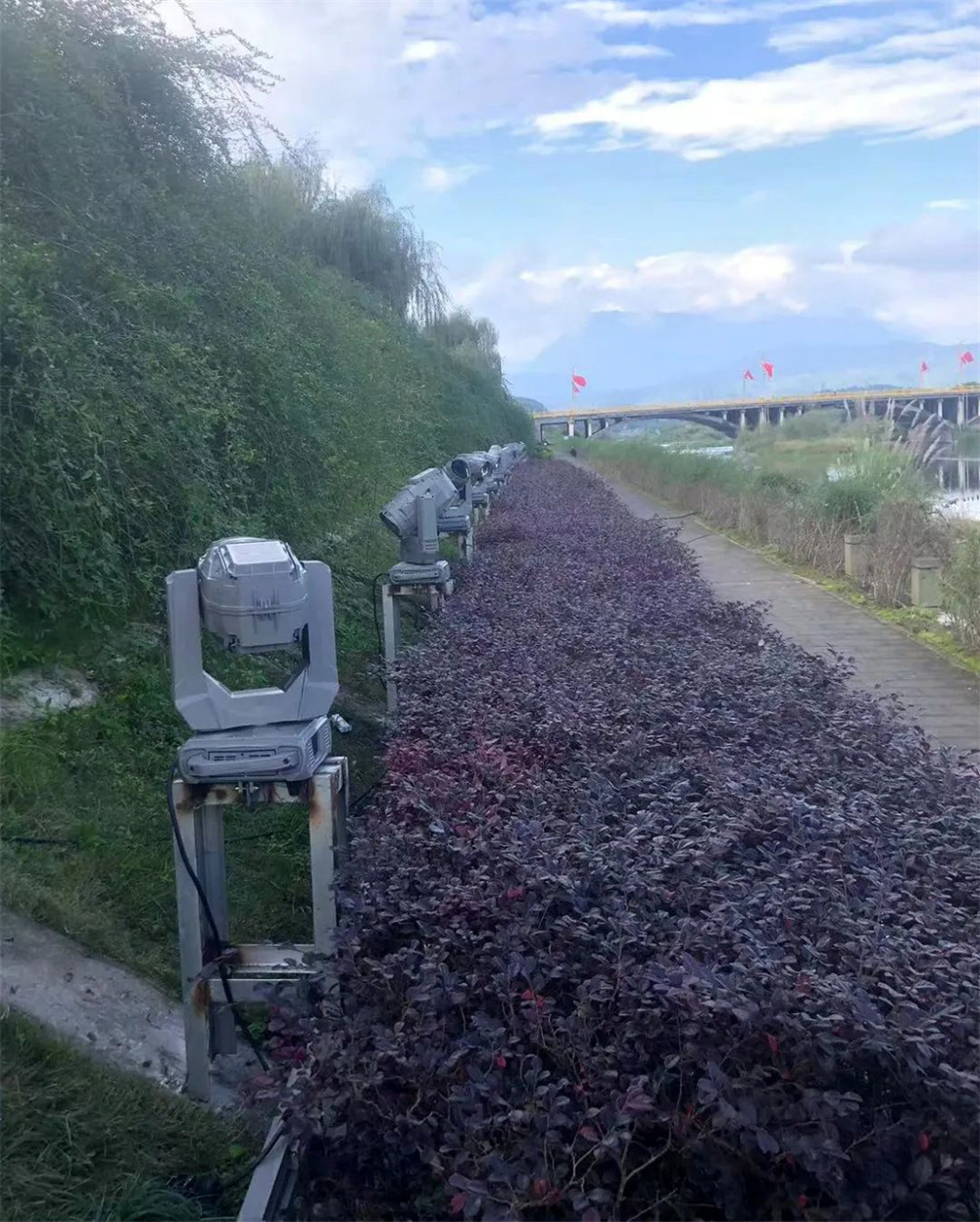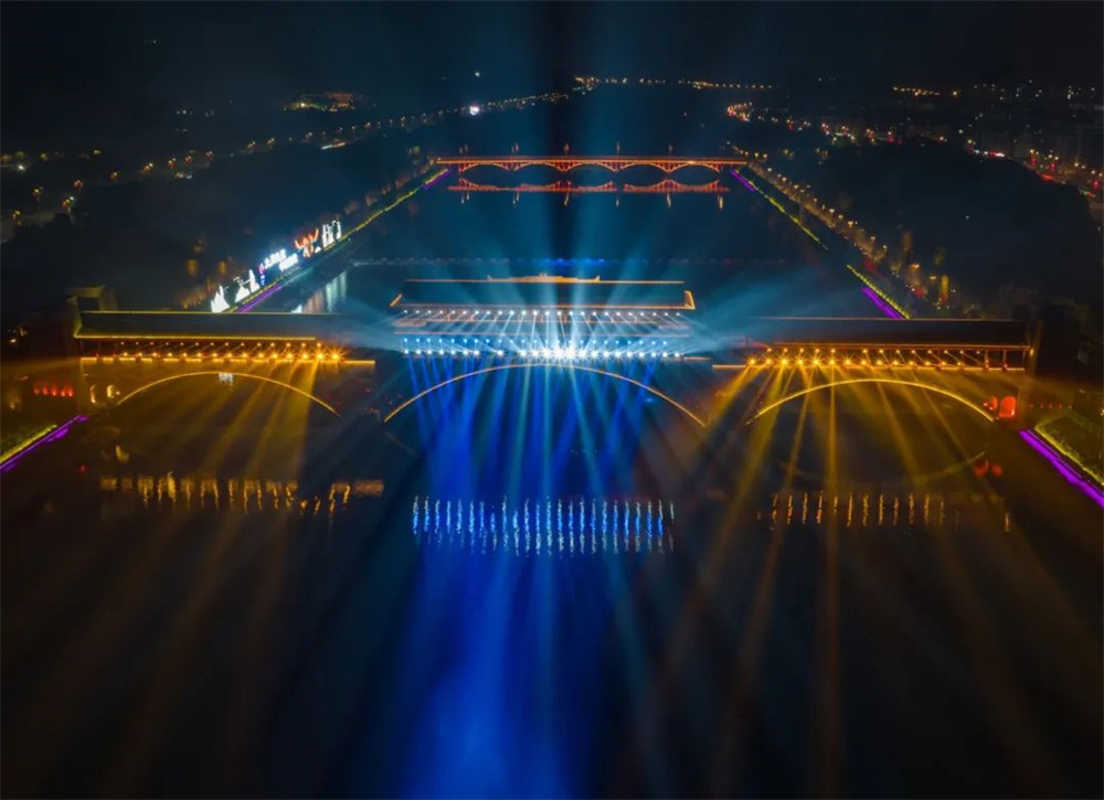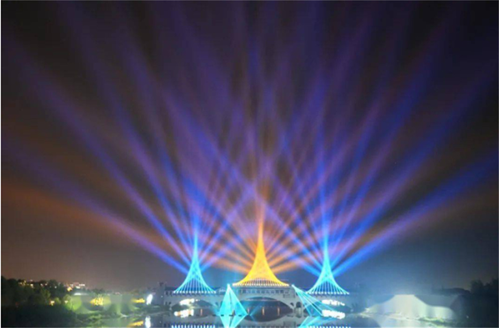 綿陽北川禹王橋燈光秀使用歐瑪防水光束燈近500臺。不管風吹雨打,我依然璀璨多姿,歐瑪防水光束燈擁有360°全防護特性,輕松防水防潮。燈光變化與音樂和表演緊密配合,通過強勁的光束、豐富的色彩,將羌族風情、大禹文化和現代氣息展現在觀眾面前,讓每一位觀眾都沉浸在光與影、美如畫卷中,流連忘返。