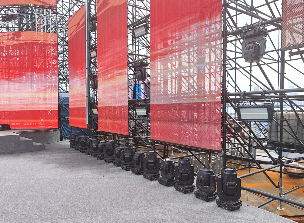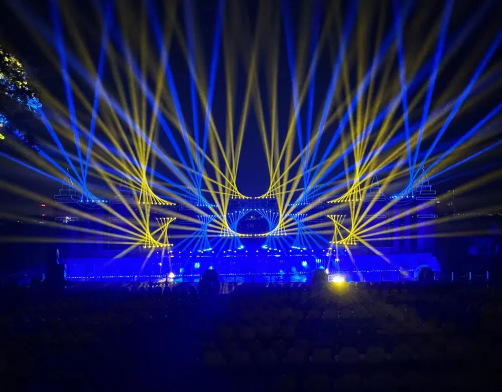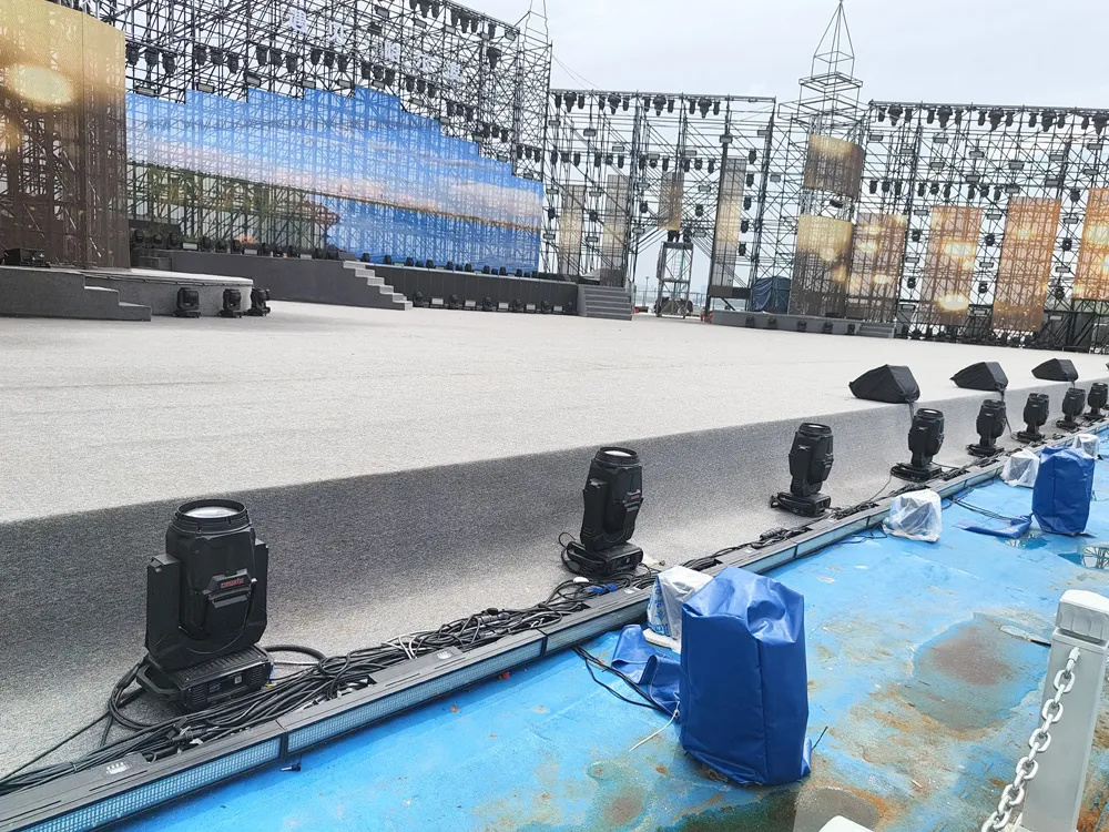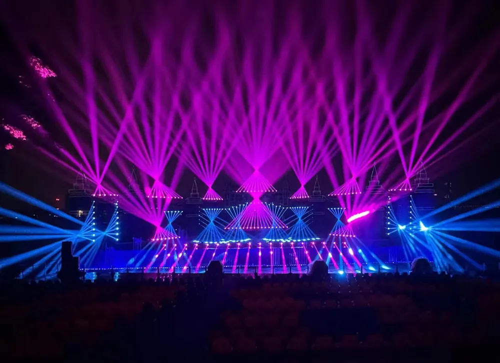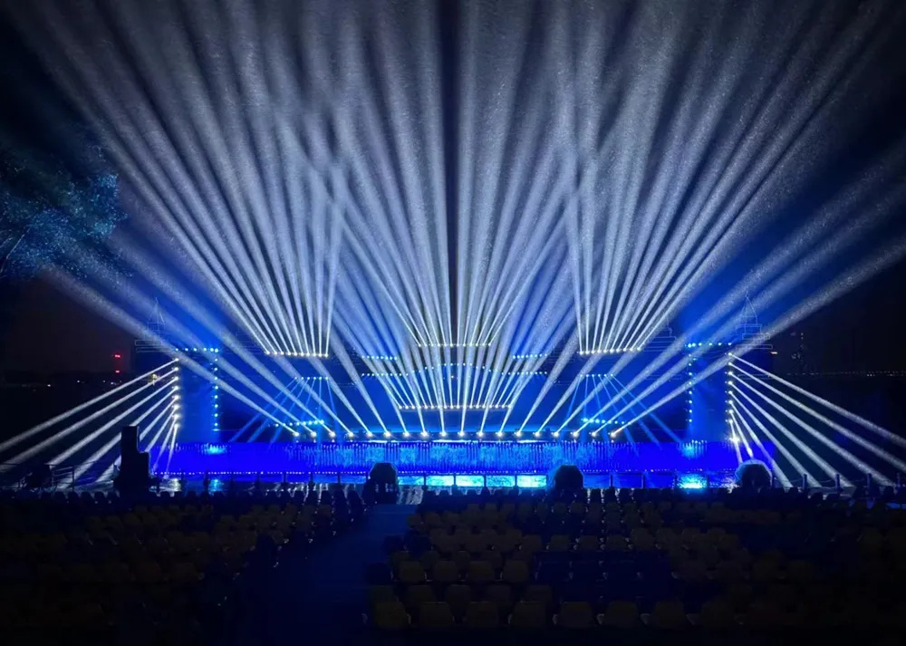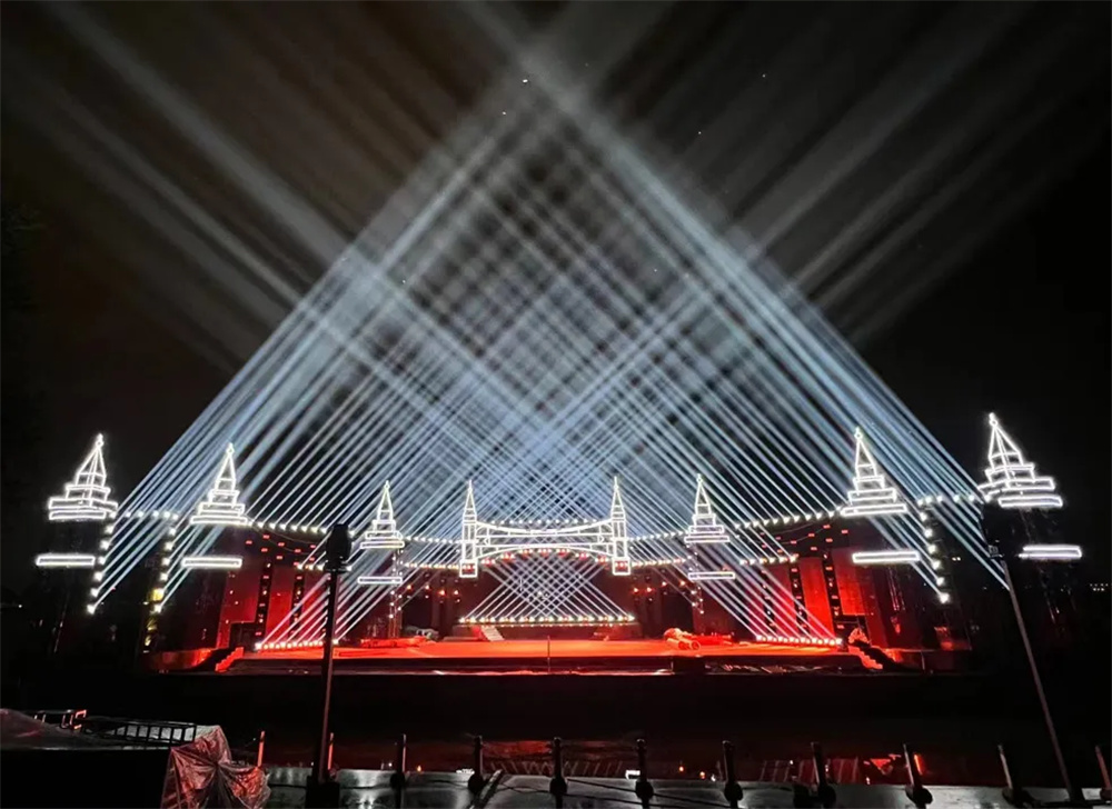 《遇見?哈爾濱》江上沉浸式演藝使用歐瑪防水切割燈、防水光束燈、搖頭染色燈近500臺。
