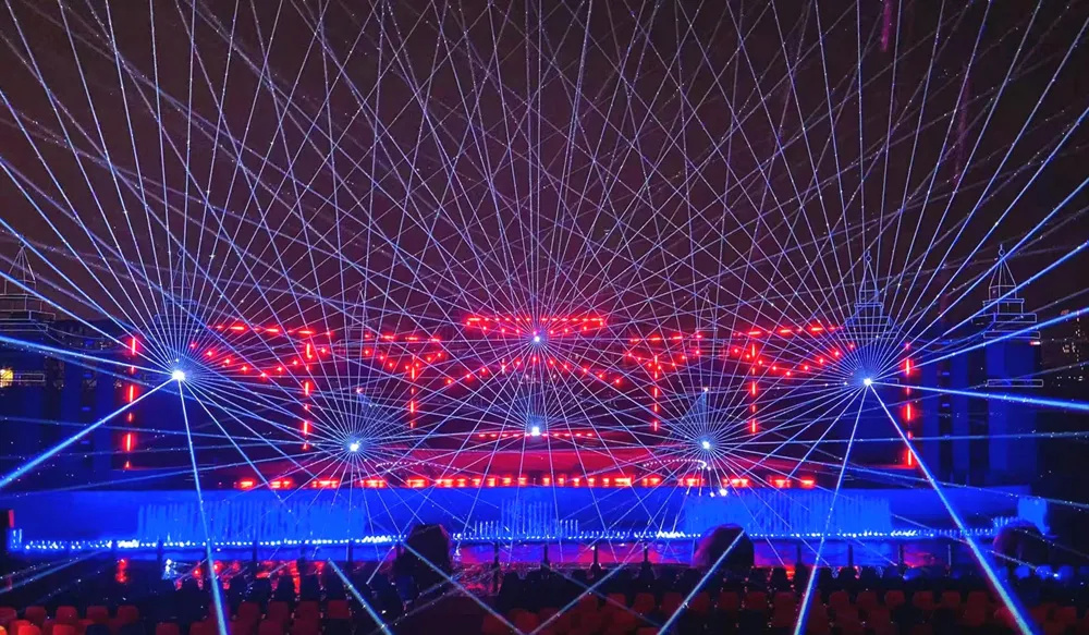 銳利多姿的燈光成為秀場的核心燃點,創意與科技結合、文化與激情碰撞,以情景劇、歌舞、雜技、水上表演等表現形式,結合水幕電影、火秀特效、音樂數控噴泉、激光表演、無人機表演等科技手段,將“人、聲、光、水、電、影、景”完美融合,演繹了一幅幅動人的炫彩畫卷。