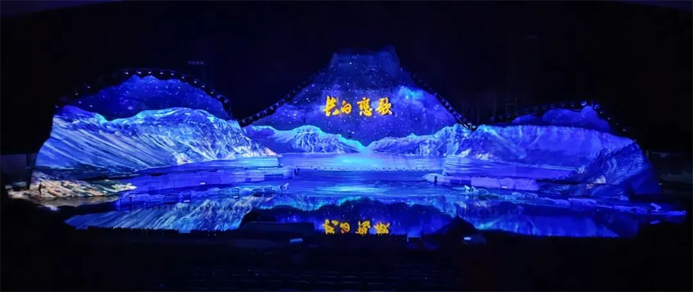 《長白戀歌》采用歐瑪800多臺防水系列燈光設(shè)備,主要是:防水LED切割燈、防水LED三合一圖案燈、防水LED染色燈。
