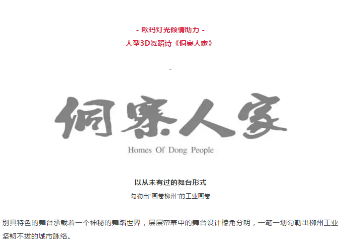 走過“陽春”、“清夏”、“三秋”、“九冬”四季,穿越時空看踩堂,千年的踩堂沉淀為柳州厚重歷史中濃墨重彩的一頁。3D舞蹈詩《侗寨人家》以單純和一致的結(jié)構(gòu)元素貫穿古今,聚焦于侗族人民的內(nèi)心縱深,展示了侗族人民追求和諧幸福生活的精神面貌,更象征著一個民族的偉大復(fù)興!
