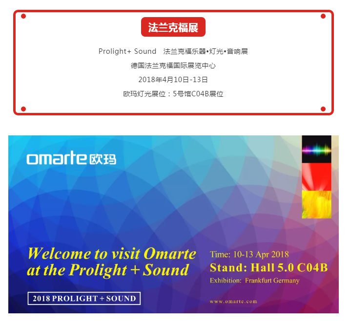 2018年4月10日,德國(guó)法蘭克福國(guó)際燈光及音響技術(shù)展覽會(huì)(Prolight+Sound)如期而至。歐瑪燈光此次參展,為全球客商展示了多款歐瑪燈光旗艦系列產(chǎn)品,包括:600wLED切割燈(Ares-P6)、450wLED全防水光束燈(Ares-B5),200wLED圖案燈(Ares-S2), 19顆40wLED蜂眼染色燈(Eos-B19)、4顆60wLED電腦燈(Eos-B4),、7顆60wLED電腦燈(Eos-B7)、 小追光RPG8等,其中4顆60W和7顆60W 精致簡(jiǎn)約的設(shè)計(jì),出色的線形調(diào)光效果,深受歐洲客戶喜愛(ài),更有客戶現(xiàn)場(chǎng)就已經(jīng)下單的!