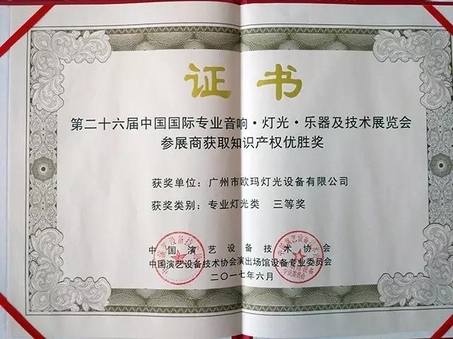 歐瑪燈光一直以來都對產品研發,持續創新,維護知識產權等方面非常重視,從初創至今始終堅持走自主研發的道路,本次獲獎既是對歐瑪技術創新的肯定也是對歐瑪的鼓勵。