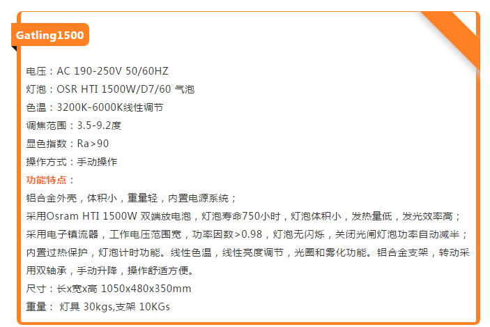 我們的大追光燈(Gatling1500)