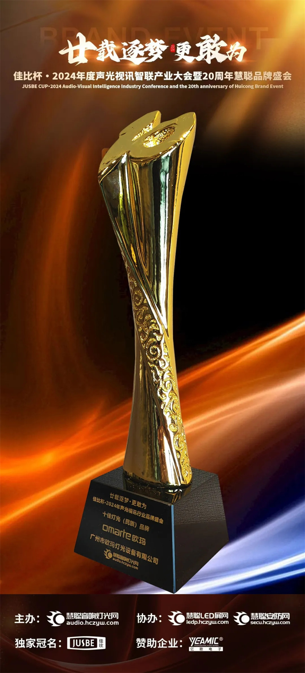 歐瑪燈光榮獲“十佳燈光(民族)品牌” 。得此殊榮,是行業對歐瑪燈光一貫以來對產品精益求精不倦追求、對服務以人為本初心堅守的最大肯定和激勵。