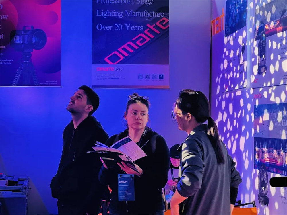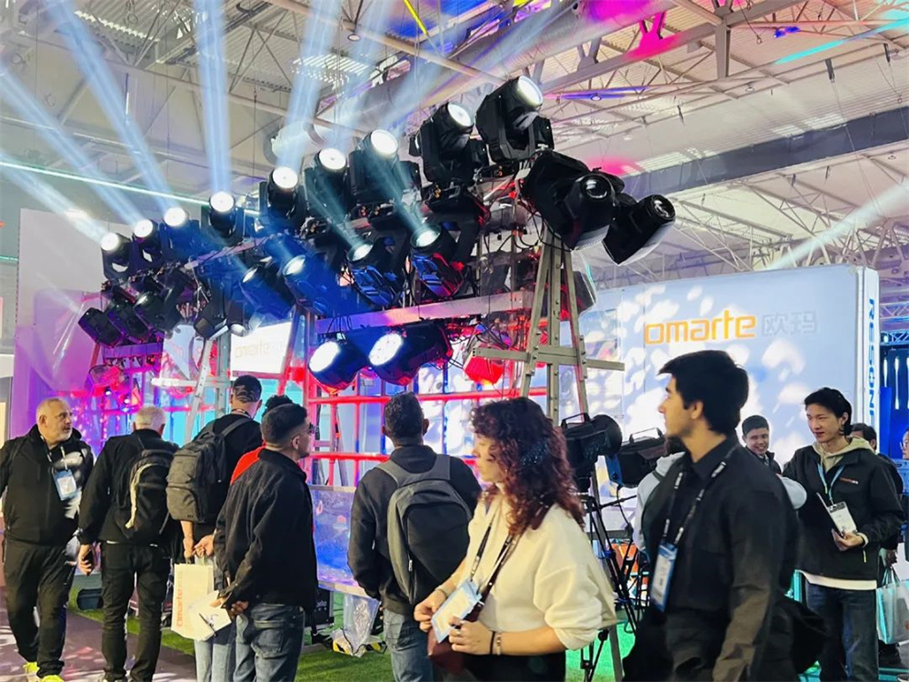 OMARTE歐瑪攜旗下多款自主研發(fā)的重磅產(chǎn)品閃耀亮相,歐瑪防雨水系列高亮度、高顯指、高穩(wěn)定性、長(zhǎng)距離、長(zhǎng)壽命、輕量便捷、模塊化結(jié)構(gòu)支持快速拆裝,高耐用性等優(yōu)越的性能特點(diǎn),不僅滿足市面上各種演藝用光的指標(biāo)要求,還輕松應(yīng)對(duì)全域氣候?qū)I(yè)演出場(chǎng)景,強(qiáng)大的環(huán)境適應(yīng)力,引發(fā)了海外賓客的興趣,展位人氣爆棚,給觀眾帶來(lái)沉浸式光影體驗(yàn),成為了展會(huì)焦點(diǎn)。