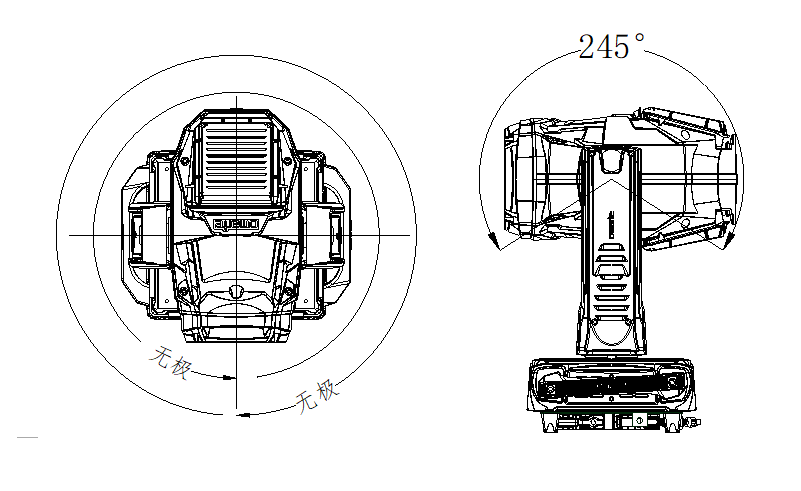 · 調光及頻閃:0-100%機械線性調光;0.5-11HZ機械頻閃,內置頻閃宏功能