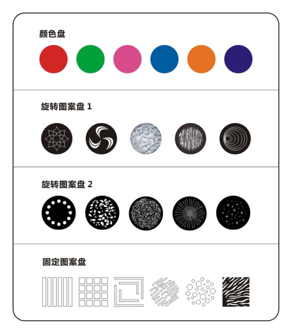 · 1個(gè)顏色盤帶有6種固定顏色片(可定制),雙向可任意速度進(jìn)行流水