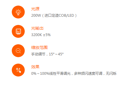 調光系統:0%~100%線性平滑調光,多種頻閃速度可調,無閃爍