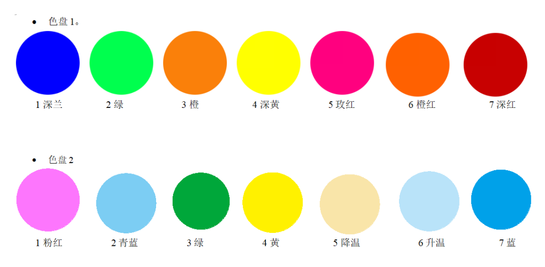 ·?2個顏色盤:各有7個顏色片+空白;帶雙向旋轉的彩虹效果