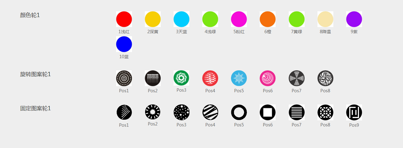·?2個(gè)圖案盤(pán),其中一個(gè)帶有9個(gè)金屬圖案的固定圖案輪;另一個(gè)是帶有可更換的4個(gè)玻璃圖案和4個(gè)金屬圖案的旋轉(zhuǎn)圖案盤(pán),有圖案定位、雙向旋轉(zhuǎn)、圖案流水和抖動(dòng)效果