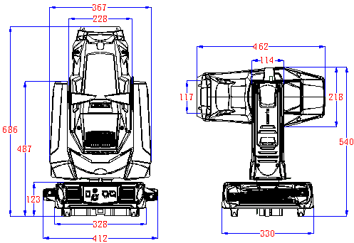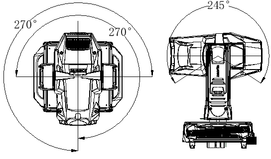 ·?為了維護(hù)和運(yùn)輸,燈體帶有PAN 和TILT 軸向鎖